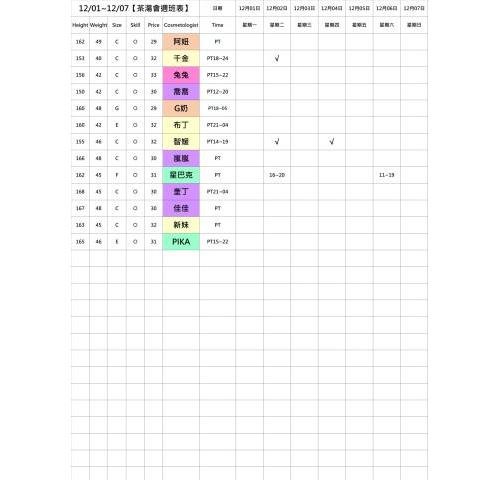 ●:可體育 □:可音樂 ○:可私下跟妹談