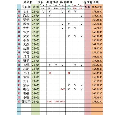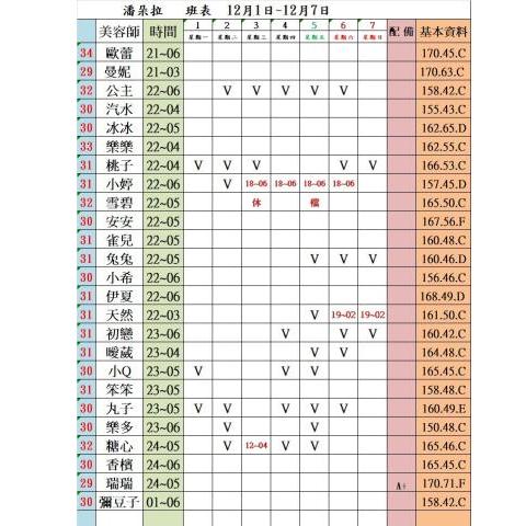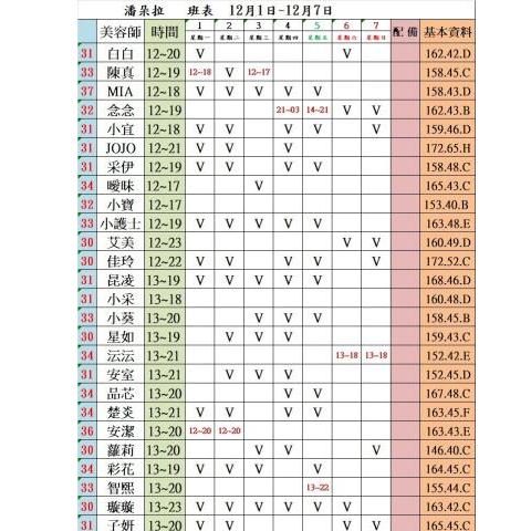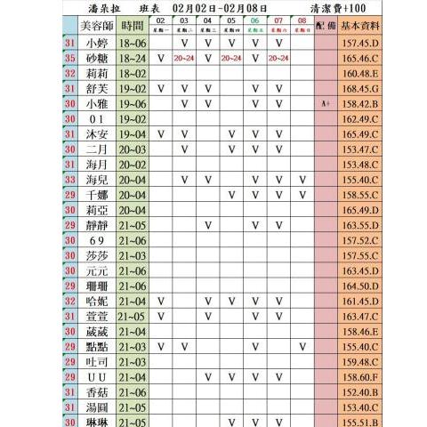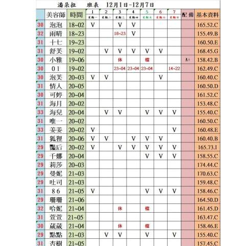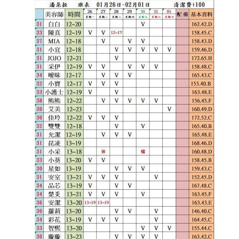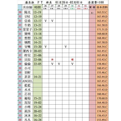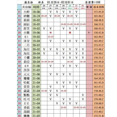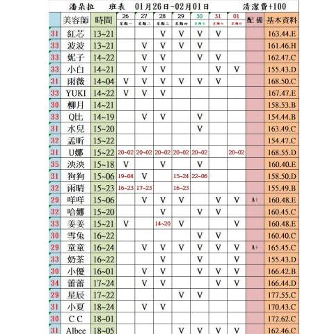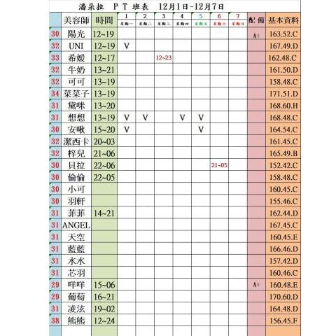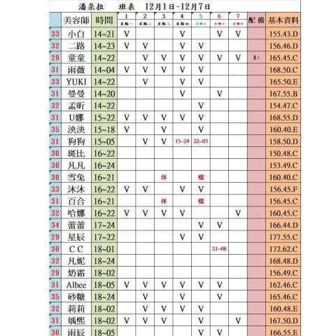 價格: 班表最左邊紅色數字代表價格